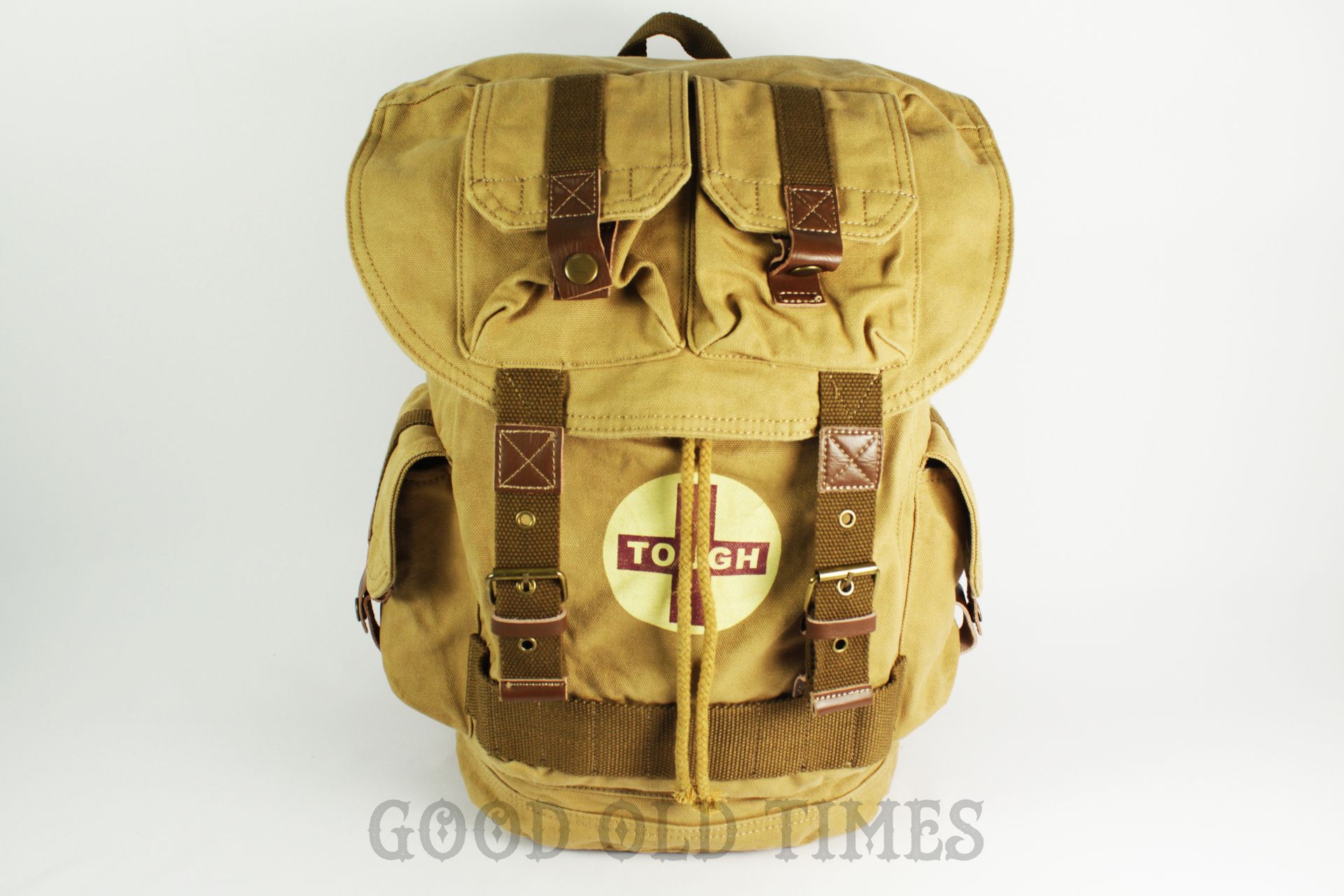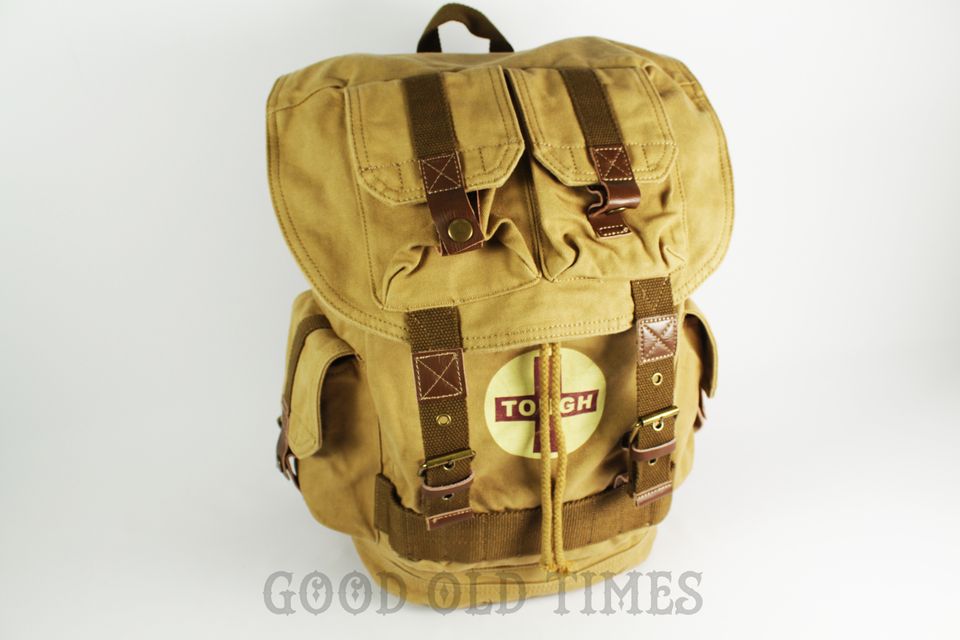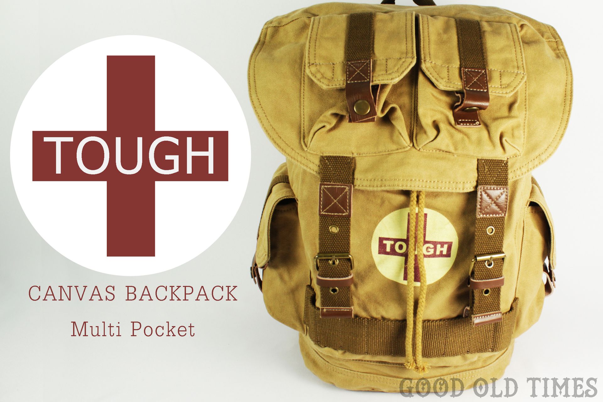 กระเป๋าแนววินเทจ TOUGH เป็นกระเป๋าเป้ ฝาพับ ล็อคสายรัดด้วยกระดุมแป๊ก มีช่องด้านบน และด้านข้าง ผ้าแคนวาสหนา นุ่ม